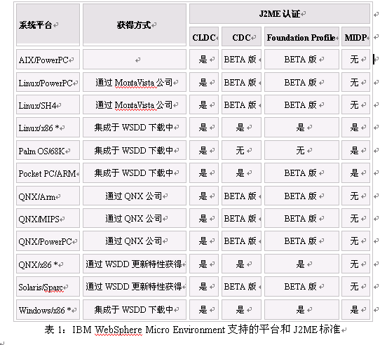 的MIDP应用平台。在Compaq的iPaq上已经实现了CDC(基于Pocket PC),另外前面提到过,IBM的WebSphere Micro