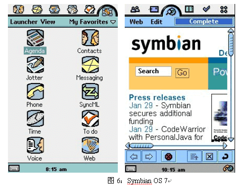 OS上已经有了MIDP的参考实现,但是并不是最适合PDA的Profile。Symbian实现了 CLDC和MIDP,作为智能手机的操作系统,是理想