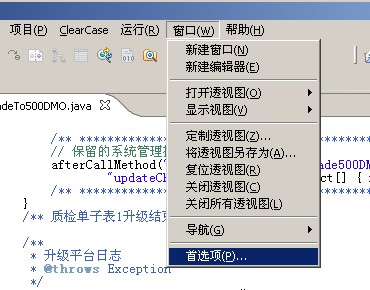 在此,我假设你已经安装了WTK。如果没有,请到Sun公司的网站上下载。Eclipse启动后点击窗口–>首选项(如图1)。