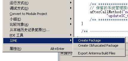 完成上面工作后,可以说你的J2ME环境基本上就搭建好了。你可以在上面新建、编译、测试、打包你的程序了。怎么样简单吧?但是有一个问题,我们没有设置混淆器,不能使用“Create Obfuscated Package”。混淆器对减小Jar包大小,防止程序被反编译很有用,因此很有必要在J2ME开发环境中设置混淆器。