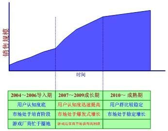 3G商用的形势逐渐明朗化,处在20072009年的成长期的中国手网游市场将呈现井喷式增长。这是因为,中国超过5亿的手机用户的基数显然要远远大于PC网络游戏的用户,成为了创造一个巨大产业非常有利的条件,同时原来的PC网游用户也最有可能接受并转化成为手机网游的玩家。如果按照8%~10%用户使用比例计算的话,那么我国市场将有5000万手机网游服务的潜在用户。所以,中国手机网游的消费群体具有相当的保证,只是还需引导。