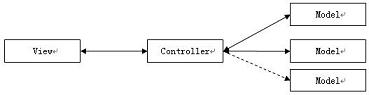 上面看到的是个典型的M—V模型,我们可以理解这种以屏幕为核心的分离的含义。Model组织起屏幕的数据,view向Model索要其希望显示的数据,注意这一操作一定要通过预先协商好的接口访问,而不是直接操作。如果出现复杂的事务逻辑(用户选择的某种操作),有人将其放在Model端,也有人放在View端,但一般上放在Model端,这时Model带有严重的Controller的色彩。