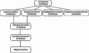 接口以支持对流的内容类型、数据长度和编码格式的确定,HttpConnection接口又扩展了ContentConnection接口以支持对于标准