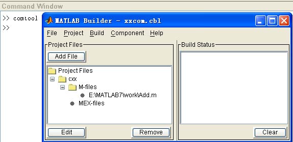4. 单击Project Files->plotclass->M-files,然后选中comtool菜单Project->Add File选项,添加上面写好的plot_test M函数,当然,可以按需要添加更多的M或MEX函数。
