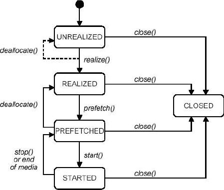 释和运算时,处于PREFETCHED状态;当数据在运算完毕后,该Player的状态变成了STARTED。我们在使用Player对象的方法对媒体流