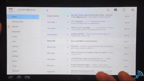 令人遗憾的是这次发布的机器中并没有预装Android 3.0系统,不过厂商在这台机器中内置了一段演示视频用来向人们展示Android 3.0中的部分特性,下面我们就一起来通过这段内置视频中的内容来了解一下这套传说中专为平板打造的Android系统吧: