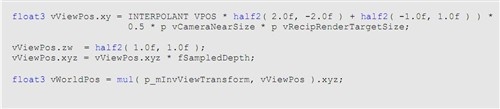 ◆为每个像素在源的形象和存储执行一个全屏幕通过计算混乱循环结果,在Alpha通道的每边缩减一个CoC图像缓冲区的四分之一大小;