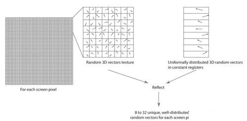 在任何可见的点和表面在屏幕上,采取多个样本(8至32),这些样本,表现了在三维空间中从目前的点计算,到预计回屏幕空间所需的时间和深度。