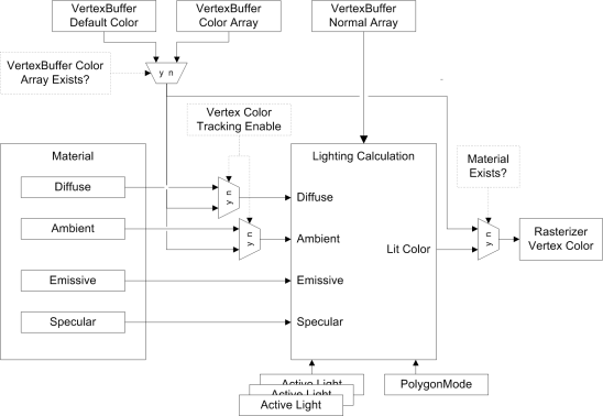 Lighting is computed according to the OpenGL 1.3 specification, section 2.13.1, with the following exceptions: