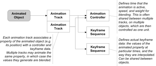 Animations are applied to an object and its descendants with the animate method in this class. The objects needed for animation and their relationships are shown in the figure below.