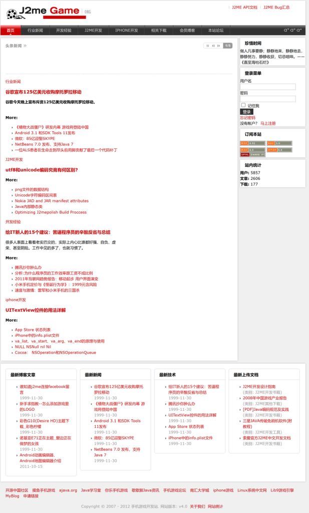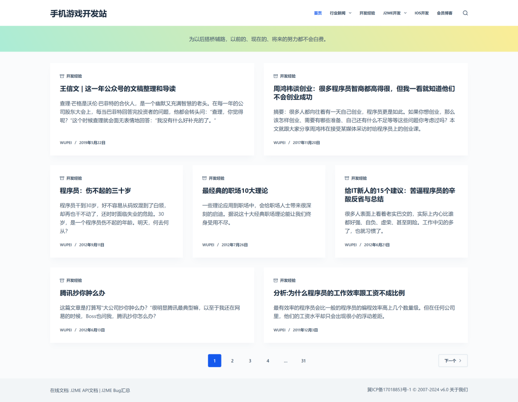 手机游戏开发站一直专注于手机游戏开发的相关技术,积极地为大家提供一个学习的平台。 手机游戏开发站 07年3月26日 友情链接: 名称: 手机游戏开发站 记录一下: 20241130 v6 改为使用wordpress: 20170922 v5 joomla: 20090208 v4 joomla: 下一页 文章 Java概述 相关文章 J2ME开发机型Bug汇总2011年1月24日 J2ME在线API帮助文档2009年7月20日 加入我们2008年9月29日