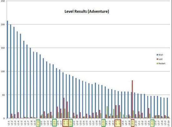 过关、失败、重玩的比例